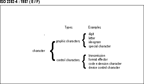 | character — A member of a set of elements that is used for the representation, organization, or control of data. (Characters may be categorized as follows:) (01 Fundamental terms; 01.02 Information representation; 01.02.11) | märk — Andmete esituseks, korralduseks või juhtimiseks kasutatava elemendihulga liige. (Märke võib liigitada nii:) (01 Põhiterminid; 01.02 Infoesitus; 01.02.11) |