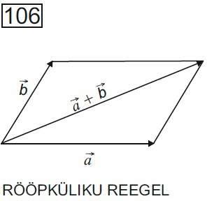 | rööp_küliku reegel [- reegli, - reeglit, - reegleid] geomeetria (=rööpkülikureegel) reegel kahe mittekollineaarse vektori liitmiseks: konstrueerides ühise alguspunktiga vektoritele rööpküliku, on summaks samast punktist lähtuv rööpküliku diagonaal. Δ vektorite summa joonisel 106. Vt ka kolmnurga reegel ● правило параллелограмма |