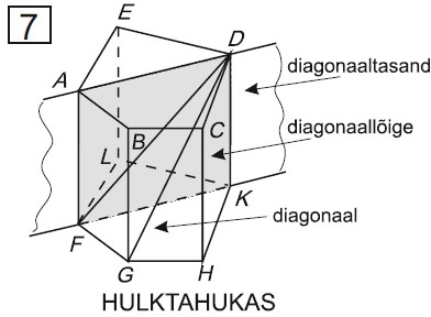 | tasandil asuv sirge [- asuva sirge, - asuvat sirget, - asuvaid sirgeid] geomeetria sirge, mille kõik punktid on ka vaadeldava tasandi punktid. Δ hulktahuka diagonaaliga FD määratud sirge joonisel 7 asub punktidega A, D ja F määratud diagonaaltasandil. ● прямая, лежащая на плоскости |